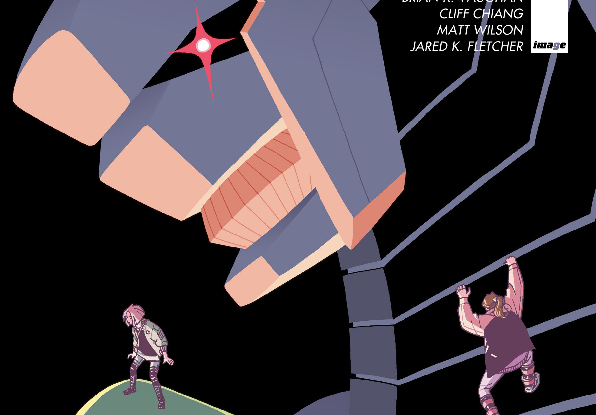 The art in this issue was outstanding as always. It is going to be very exciting to see what Cliff Chiang and Matt Wilson’s vision of the future is, as just the pieces at the beginning and end of the issue are already great. The old Grand Father is wearing a Wu-Tang t-shirt, and his assistant has on a pair of Adidas sandals. A couple Apple products have also shown up in previous issues, which hints at some odd retro future that will be a very interesting setting for the next coupe of issues. There wasn’t a ton of action in this issue but the giant time traveling robots continue to be fantastic, with the young Grand Father’s silver robot appearing and taking up a whole page just before the paper girls escape to the future. The inside of the robots, again, have very different aesthetics (sort of squishy, pink, and organic versus clean and industrial) that indicate some sort of divergence between the far future and the far far future. Based on what we’ve already seen the next issue might be worth picking up just for the art alone, to see what sort of sleek , industrial, retro future Chiang and Wilson create.